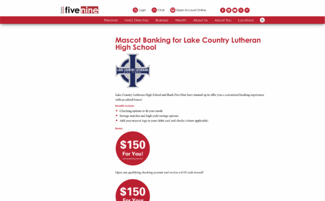 Bank Five Nine – $150 Checking Bonus