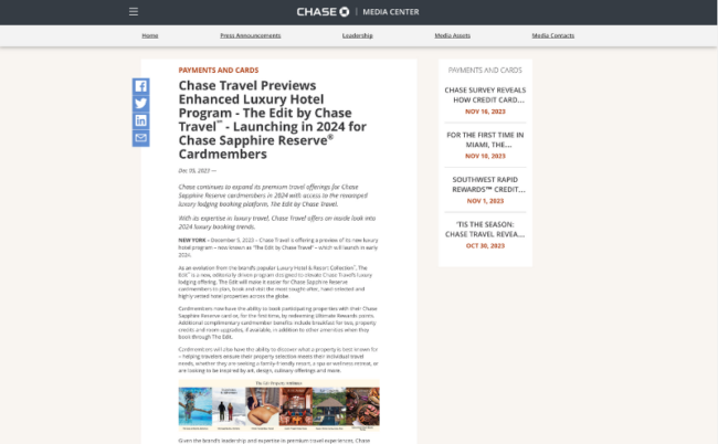 Details Written by: RJ Chase has announced a new hotel program for Sapphire Reserve cardholders. The Edit by Chase Travel will launch in 2024. As an evolution from the brand’s popular Luxury Hotel & Resort Collection℠, The Edit℠ is a new, editorially driven program designed to elevate Chase Travel’s luxury lodging offering. The Edit will…