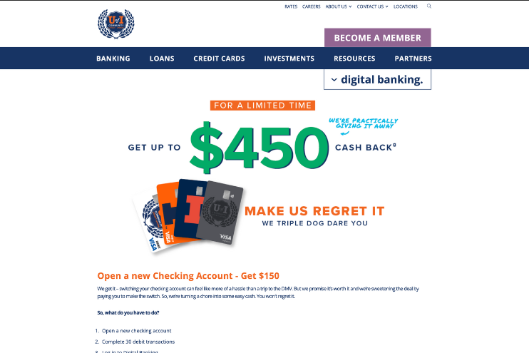 Offer Details Written by: RJ Requirements Open a new checking account Complete 30 debit card transactions within 60 days of opening Log in to digital banking Eligibility IL – member eligibility Can’t have had a checking account in the past 180 days Can’t have received a prior checking bonus Fees All checking accounts are fee…