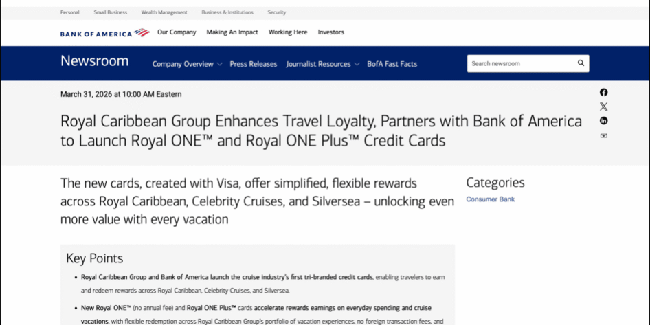Bank of America and cruise line Royal Caribbean have launched two new cobranded cards: