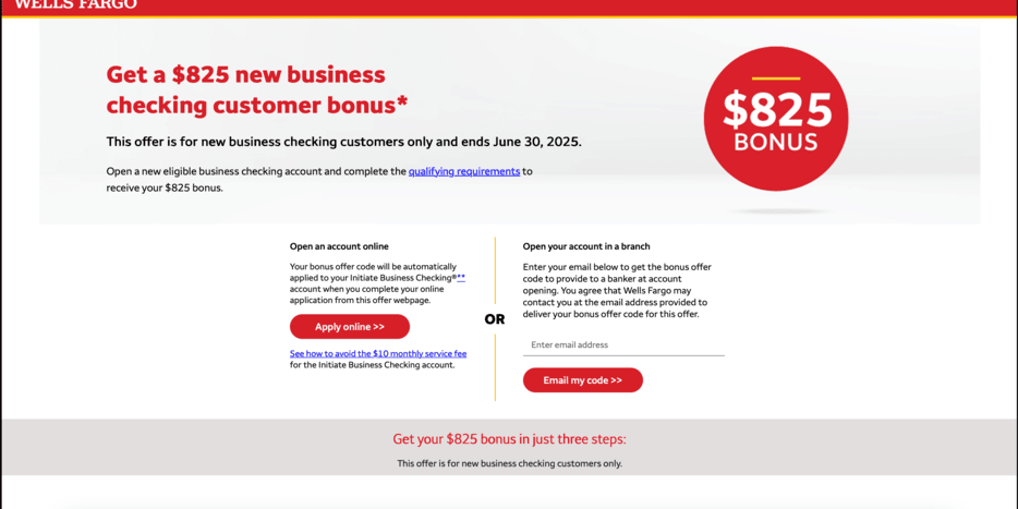 - The business entity has received a bonus for opening a Wells Fargo business checking account within the past 12 months.
